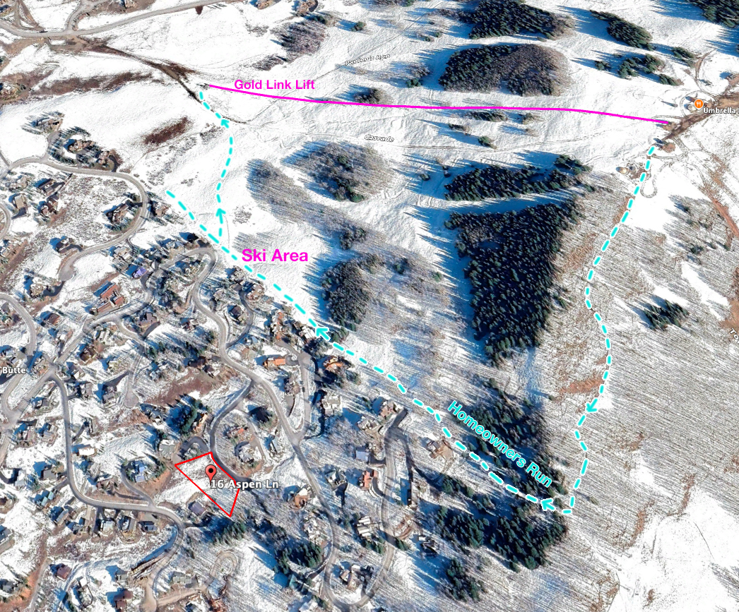 Located at the end of the cul-de-sac, 16 Aspen Lane consists of two combined lots totaling approximately 0.78 acres, offering a rare sense of space and privacy in Mt. Crested Butte.